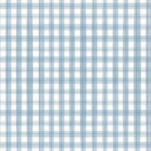 Papel De Parede Revoada Xadrez Picnic Pincelada Azul 4444