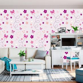 Papel De Parede Rosa Borboletas Corações Autocolante Quarto