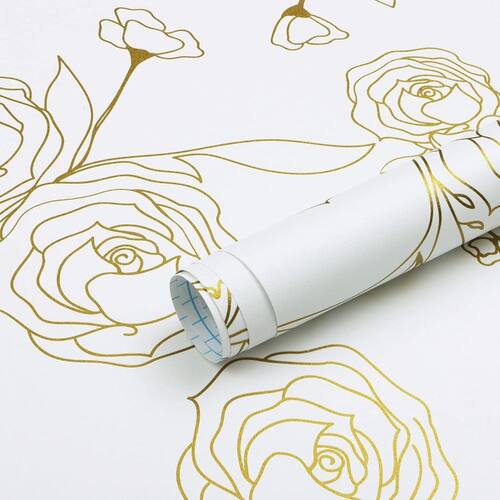 papel de parede - Papel de parede de rolo grande: 1,498 cm x 43,9 cm, tamanho maior, papel de parede de rolo grande, mais adequado para uso em grandes áreas, evitando diferenças de cor que podem surgir de vários rolos pequenos. - Padrões requintados: papel de parede floral branco e dourado, os padrões florais dourados são simples e lindos, decorar seu quarto sempre trará uma experiência visual confortável - Multiuso: DIY! Este papel de parede pode ser utilizado em qualquer superfície lisa e seca, como revestimentos de parede, móveis, revestimentos de armários, prateleiras, etc - Fácil de instalar: Papel de parede autoadesivo que pode ser removido sem danificar a parede, sem necessidade de cola extra, basta limpar a superfície, medir o tamanho desejado, cortar o papel de parede, descascar e colar, remover bolhas de ar - Dica: compre rolos suficientes de cada vez para garantir que eles venham do mesmo lote para evitar variações de cor. Superfícies limpas e planas aderem melhor