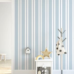 Essas listras são mais largas e proporcionam um estilo delicado e atemporal para a decoração dos pequenos. É o papel de parede perfeito para tornar a atmosfera mais doce e elegante para os pequenos.