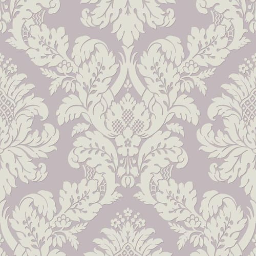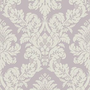 Estampas do estilo Damask são modernas e elegantes, ainda mais se estiverem inseridas em um papel de parede com fundo lilás metálico. O resultado será um ambiente mais iluminado e sofisticado.