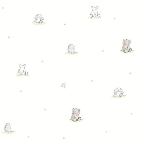 Coelhinhos, elefantes fofos, ursinhos e o famoso porco-espinho fazem parte desse lindo papel de parede. Os desenhos são delicados e combinam com outros modelos dessa mesma coleção.