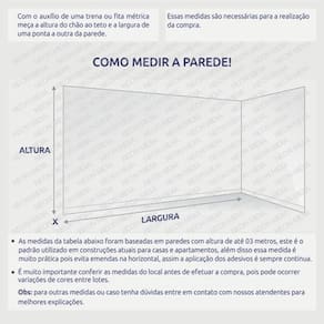Se sua parede tem por exemplo, 3,70 m largura por 3,0 m altura , você tem uma área total de 11,10m 3,70x3,00 para revestir com o papel de parede.