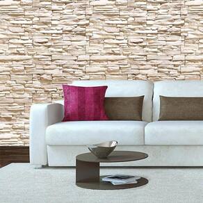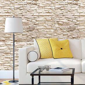Papel De Parede Tijolos E Pedra Areia Fina Adesivo Sala