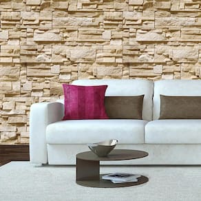 Papel De Parede Tijolos E Pedra Cor Clara Adesivo Lavavel