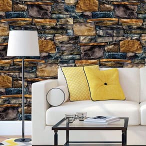 Papel De Parede Tijolos E Pedras Queimados Adesivo Sala