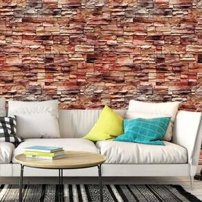 Papel De Parede Tijolos E Pedras Vermelhas Adesivo Lavavel