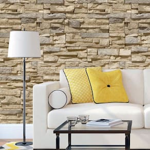 Papel De Parede Tijolos Pedras Claras Areia Adesivo Sala
