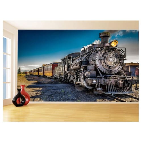Papel De Parede Trem Locomotiva Trilhos Vagão 3,5M Ncd359