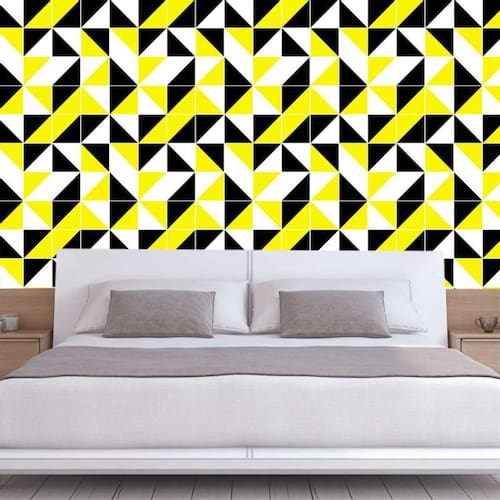 Papel De Parede Triângulos Preto Amarelo Branco Geométrico