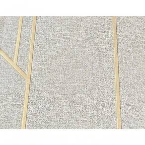 Papel de parede vinilico, estilo linho com geometria Essencial bobinex 4304, na cor marron claro com traços dourados na geometria .