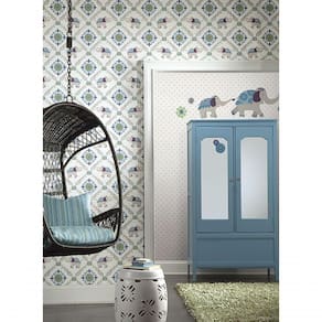 Papel De Parede Waverly Kids Bollywood Wk6710 - Rolo: 10m X 0,52m Papel de Parede Waverly Kids Bollywood WK6710 com destaque para os elefantes em uma versão divertida e colorida. Crie uma decoração étnica e sofisticada no quarto das crianças como você nunca viu. A Waverly superou as espectativas com esta nova coleção de papéis de parede para quarto de criança, são opções modernas e elegantes para decorar o quarto das crianças ou dos pequenos adultos, numa releitura de como utilizar papel de parede nesses ambientes. Um produto da Americana York Wallcoverings.