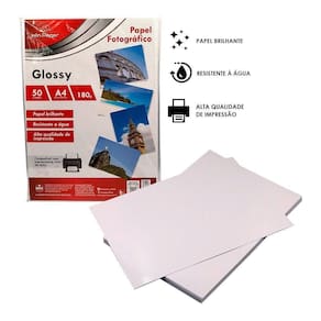 ESPECIFICAÇÕES: Material: Papel Dimensões: Comprimento: 21cm x Larg.: 29,7cm Peso: Aprox. 180g CONTÉM: 50 PAPEL FOTOGRÁFICO A4 GLOSSY 180G