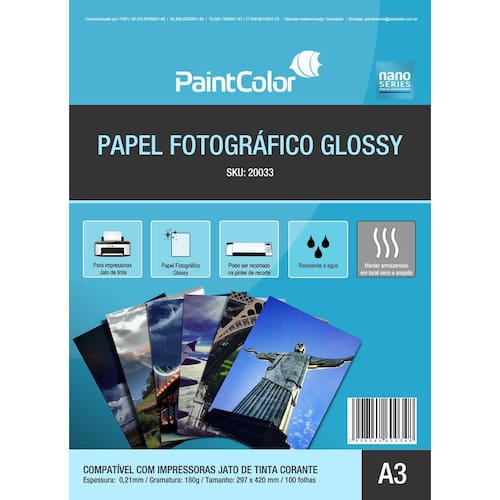 Para guardar e relembrar dos seus melhores momentos e fazer todos eles inesquecíveis. O Papel Fotográfico Glossy Jato de Tinta A3 tem alta definição, resistência a água e secagem instantânea, ideal para impressões de foto. Indicado para: Fotografia e scrapbook. Características: Quantidade: 100 folhas Tamanho: A3 (297x420mm) Gramatura: 180g Tecnologia Cast-coated Acabamento: Glossy (brilhoso) Compatibilidade: Jato de tinta corante Origem: Importado Garantia: 30 dias contra defeito de fabricação.