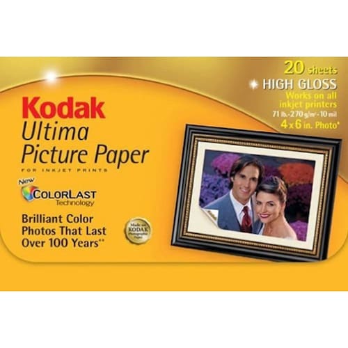 Se você estiver usando uma câmera digital ou apenas imprimindo imagens por e-mail ou pela Internet, o papel de impressão fotográfica Ultima da Kodak oferece os melhores resultados da sua impressora a jato de tinta. Este papel de jato de tinta funciona bem com todas as impressoras a jato de tinta coloridas para dar a você impressões com ótima aparência de CDs KODAK Picture, câmeras digitais ou scanners. Pacote com 100 folhas 4 x 6 folhas - Ultima imagem, de papel de alto brilho - 10 mil. 4 x 6. 20 folhas por pacote - Vendido como: Pacote