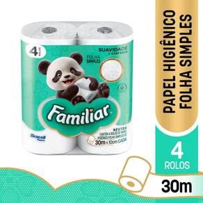 Papel Higiênico Familiar Folha Simples 30m 4 Rolos
