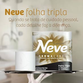 Papel higiênico neutro folha tripla de alta qualidade. Neve quer ajudar as pessoas a cuidarem de si, por isso desenvolveu um produto que proporciona maciez insuperável com mais absorção e resistência.