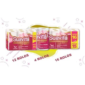 O Papel Higiênico Suavitá Folha Dupla Leve 12 Pague 11 Rolos é a opção ideal para garantir o cuidado e bem-estar que você e sua família merecem. ;