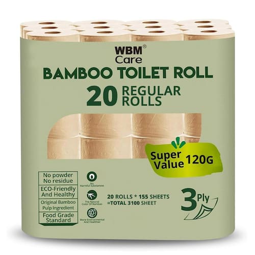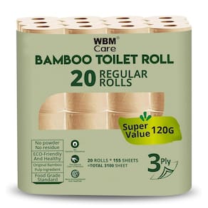 - O papel higiênico WBM Care Bamboo oferece 20 mega rolos com 155 folhas por rolo, proporcionando valor duradouro e reduzindo a necessidade de trocas frequentes de rolo.