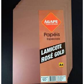 Papel Lamicote A4 210x297mm 250g/m - 25 Folhas - ágape - Rose Gold Papel Lamicote produzido em cartão com gramatura de 250g/m parece um espelho sucesso entre Topos de Bolo (Bolo Fake) e papelaria. Formato: A4 - 210mm x 297mm. Ficha técnica: Quantidade: 25 folhas Código: 078826 Conteúdo da Embalagem: 25 Folhas papel lamicote 250g/m Composição/material: celulose e plástico. Imagens meramente ilustrativas. As cores e tonalidades podem variar. Uso - Escolar Tipo de Papel - Cartão Metalizado Gramatura - 250g/m Tamanho - A4