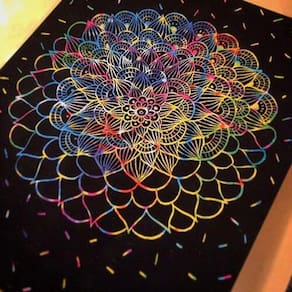 Permite que você desenhe com o bastão, já incluído no produto, arranhando a superfície e fazendo com que a criatividade apareça no papel. Para todas as idades, produto atóxico. As crianças se divertem, os adultos relaxam e todos adoram