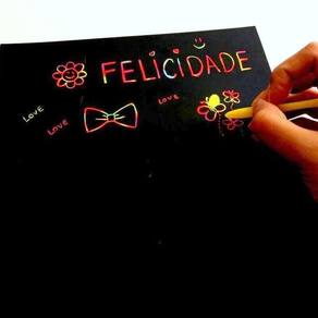 O Papel Mágico é um papel especial colorido revestido por uma camada preta.