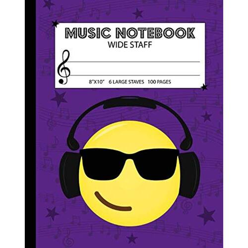Caderno musical: caderno de papel manuscrito Wide Staff para crianças - 6 bastões grandes por página (8"x10" - 50 folhas/100 páginas), capa roxa