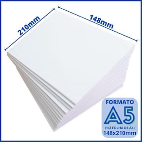 - 1.000 Folhas Papel Sulfite Offset 90g/m - Medidas 210x148mm - Sem impressão, folhas brancas - Corte preciso sem rebarbas - Pacote com 1.000 Folhas - Para impressão em impressoras jato de tinta ou laser - Não dobra quando sai da impressora - Resistente - Sustentável - Melhor custo benefício