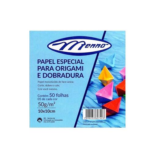 Papel para Dobradura Menno 10x10cm 50 Folhas Papel para origami com diversas cores vibrantes Monolúcido, com uma face colorida, ideal para dobrar, cortar e colar. Solte sua imaginação - Contém: 50 folhas - Cores - 5 Folhas por cor - Marca: Menno - Modelo: Papel dobradura Origami - Formato: 10 x 10 cm - Gramatura: 50g/m - Dimensões: 10 x 10 cm - Composição: Papel monolúcido Marca: Não Informado