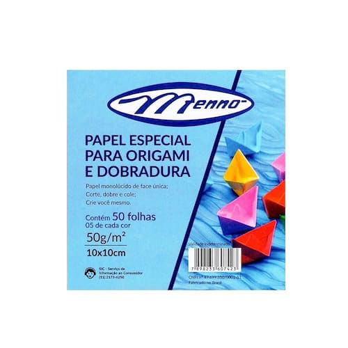 Papel para Dobradura Menno 10x10cm 50 Folhas Papel para origami com diversas cores vibrantes Monolúcido, com uma face colorida, ideal para dobrar, cortar e colar. Solte sua imaginação - Contém: 50 folhas - Cores - 5 Folhas por cor - Marca: Menno - Modelo: Papel dobradura Origami - Formato: 10 x 10 cm - Gramatura: 50g/m - Dimensões: 10 x 10 cm - Composição: Papel monolúcido Marca: Não Informado Ean: 7898233607423