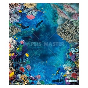 A impressão é feita em vinil adesivo. É um material lavável, impermeável, autocolante e antimofo. O produto cobre uma área de 3,50m, contando com 1,75 metro de altura por 2 metros de largura.