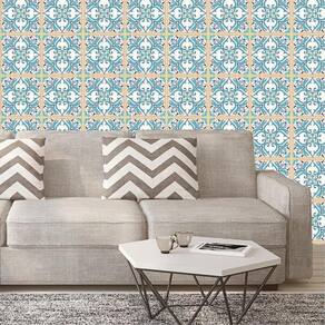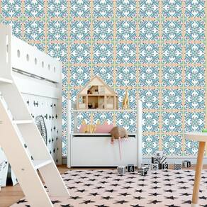 Papel parede arabesco azulejo azul claro quarto casal sala