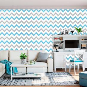 Papel Parede Azul Branco E Cinza Chevron Decorativo Adesivo