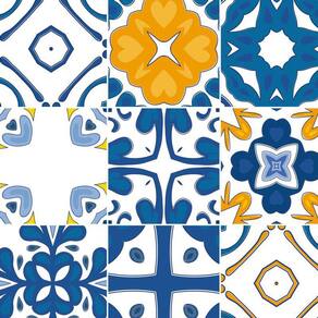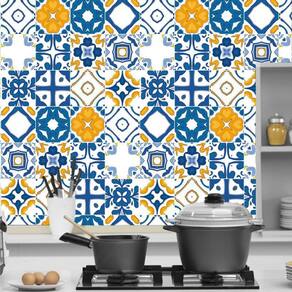 Papel Parede Azulejo Azul Laranja Adesivo Cozinha Lavatório