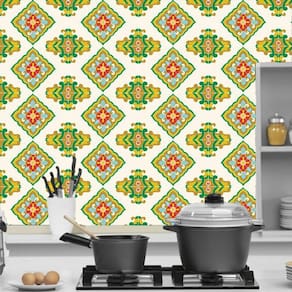Papel parede azulejo flor vermelha e verde cozinha banheiro