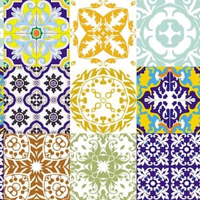 Papel parede azulejo tons amarelo e azul cozinha lavatório