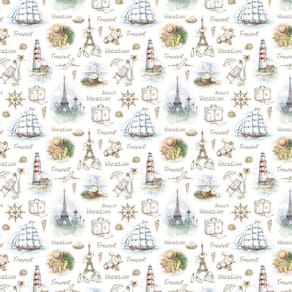 Papel parede caravelas avião mala farol viagem torre eiffel