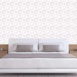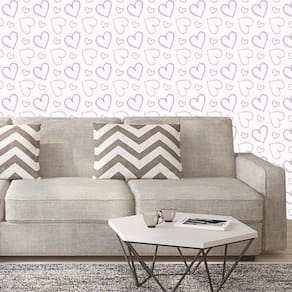 Papel parede corações em linhas laranja e lilás autocolante