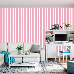 Papel Parede Listra Fina Rosa E Branco Adesivo Sala Quarto