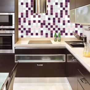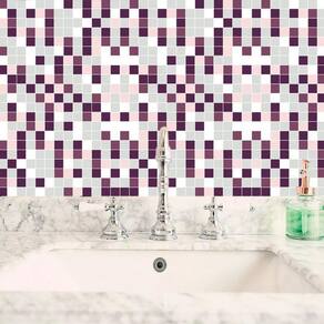 Papel Parede Pastilhas Lilas Cinza Branco Cozinha Banheiro