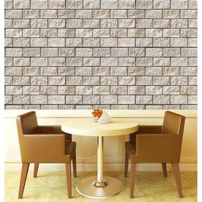 Papel Parede Pedra Tijolos Claros Autocolante Sala Lavável