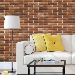 Papel Parede Pedra Tijolos Vermelho Rejunte Branco Adesivo