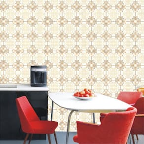 Papel parede quadrados geométrico laranja e vermelho adesivo