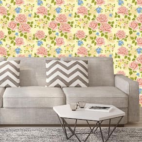 Papel Parede Rosas Vermelhas E Amarelo Adesivo Sala Cozinha