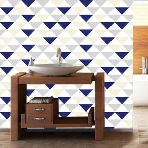 Papel parede triangulo geométrico amarelo azul cinza adesivo