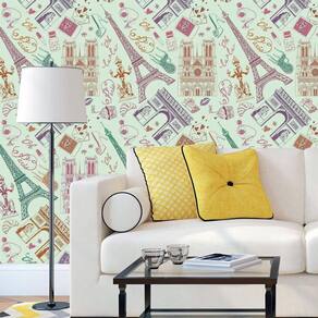 Papel Parede Verde Claro Paris Carta Coração Perfume Beijo
