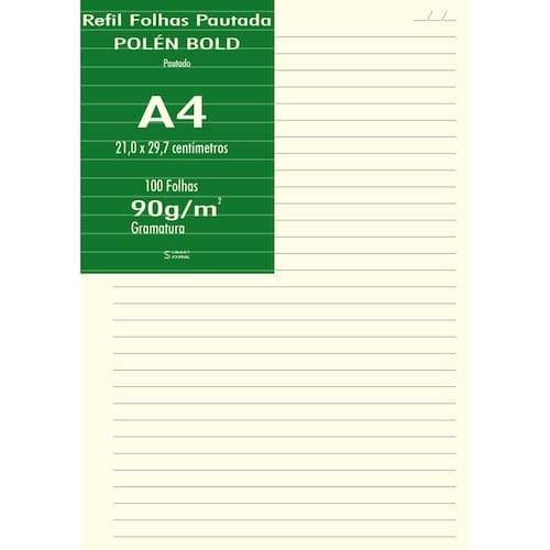 - 100 Folhas Papel Polen Bold 90g/m Tamanho A4 - Medidas 21x29,7cm / 210x297mm - Folhas com Pauta - Corte preciso sem rebarbas - Para impressão em impressoras jato de tinta ou laser - Não dobra quando sai da impressora - Resistente - Sustentável - Melhor custo benefício