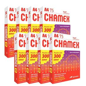 Chamex A4 75g garante ótima performance em todo tipo de atividade, como criar, escrever, imprimir e reproduzir. Com superfície resistente, corte perfeito e equilibrada absorção, permite melhor deslizamento do papel na impressora e evita desperdício de tinta. É produzido a partir do cultivo de eucalipto 100% renovável e as fibras são tratadas para obter o mais elevado grau de brancura.
