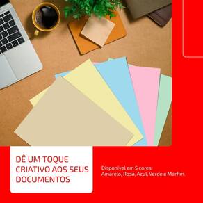 Dê mais vida aos seus projetos com os papéis coloridos Chamex. Disponível em cinco cores vibrantes (amarelo, azul, marfim, rosa e verde), é ideal para destacar trabalhos escolares, apresentações, atividades criativas e documentos que exijam organização, destaque e rápida visualização.