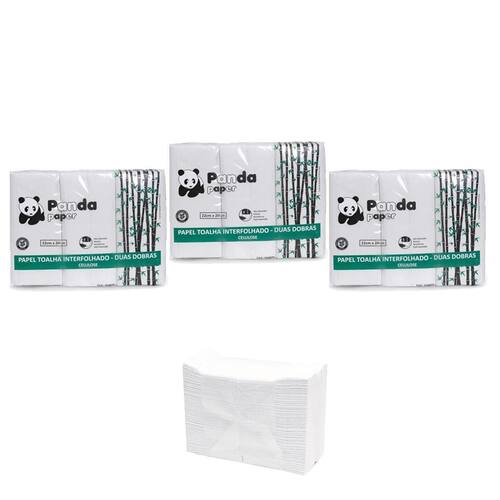 Kit com 3 Pacotes de Papel Toalha Panda Interfolha, cada um com 3 unidades de 250 folhas de duas dobras, medindo 19 centímetros por 20 centímetros. Fabricado com material de alta resistência e absorção, oferece excelente desempenho para secagem eficiente. Ideal para cozinhas, banheiros e ambientes comerciais que exigem praticidade e qualidade. Fotos meramente ilustrativas Marca: Não Informado